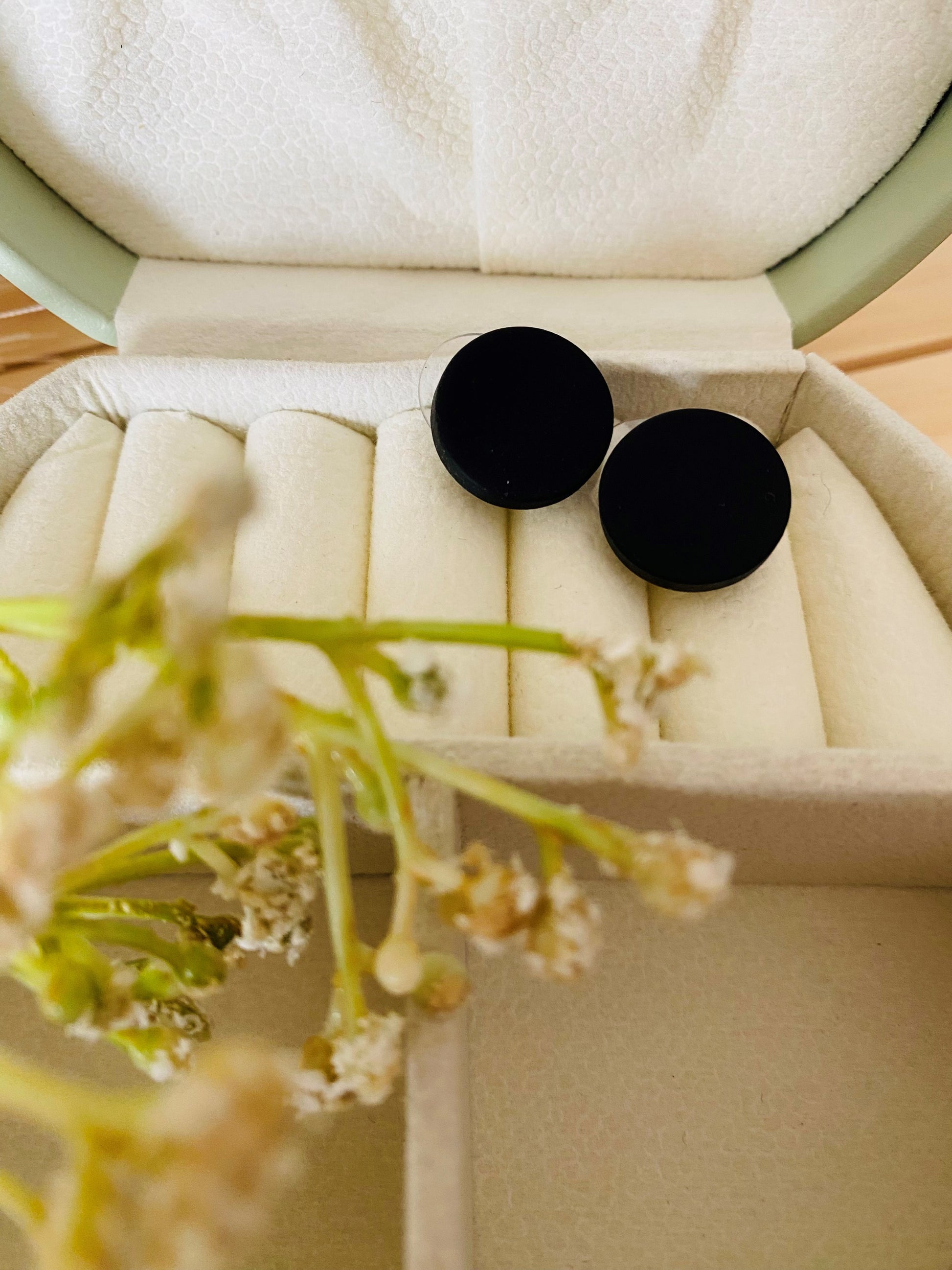 Strak, stijlvol en tijdloos. De zwarte ronde oorstekers voegen een vleugje verfijning toe aan elke look. Hun diepe glans en eenvoudige vorm maken ze het perfecte everyday statement — minimalistisch met maximale impact.