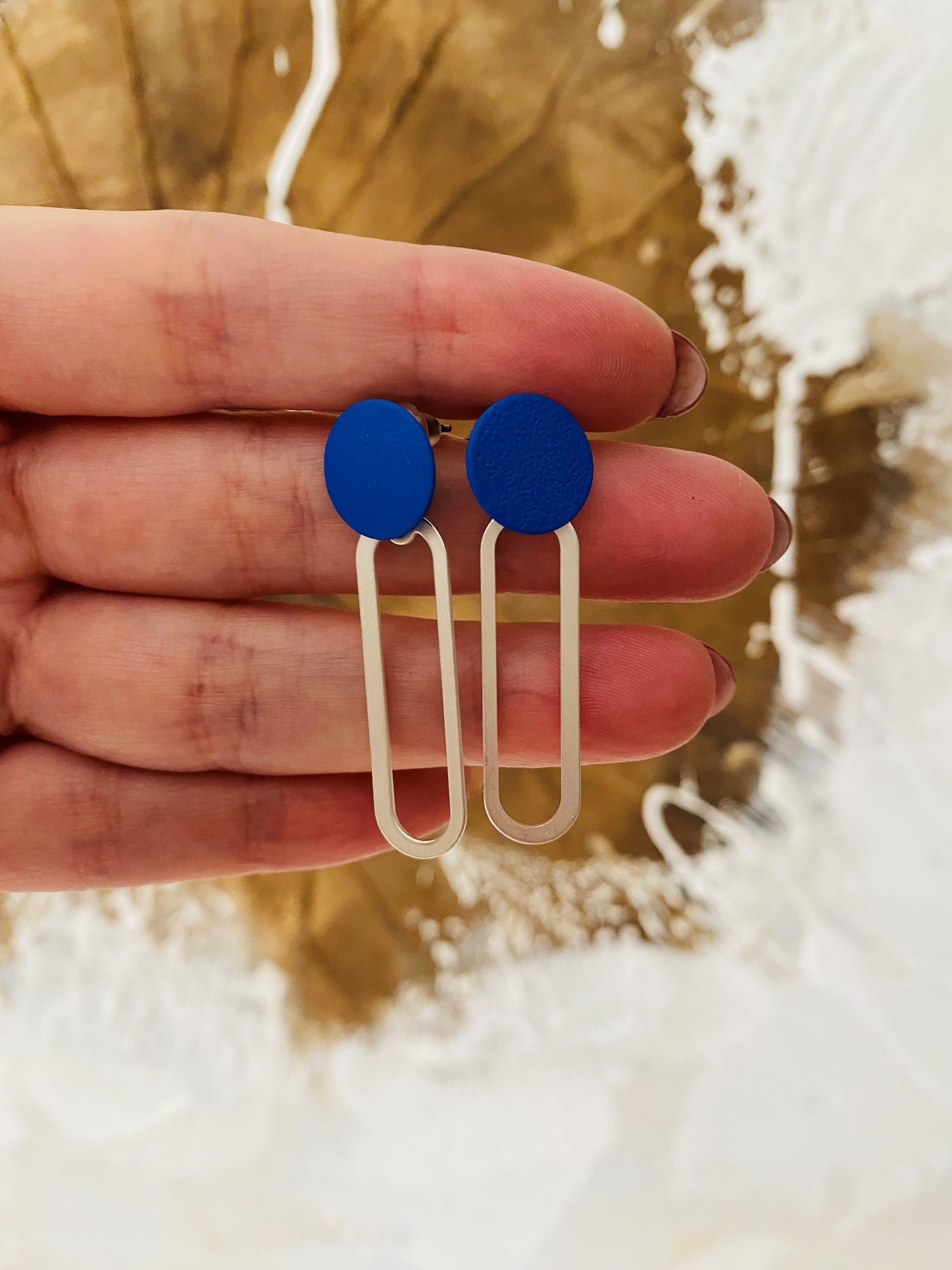 Laat subtiele elegantie spreken met deze stijlvolle oorringen. De ronde blauwe steker vangt het licht als een stille hemel, terwijl de ovale matte zilveren hanger zacht beweegt bij elke stap. Een harmonieuze combinatie van kleur en vorm – modern, tijdloos en moeiteloos te dragen, zowel overdag als bij een avondlook.