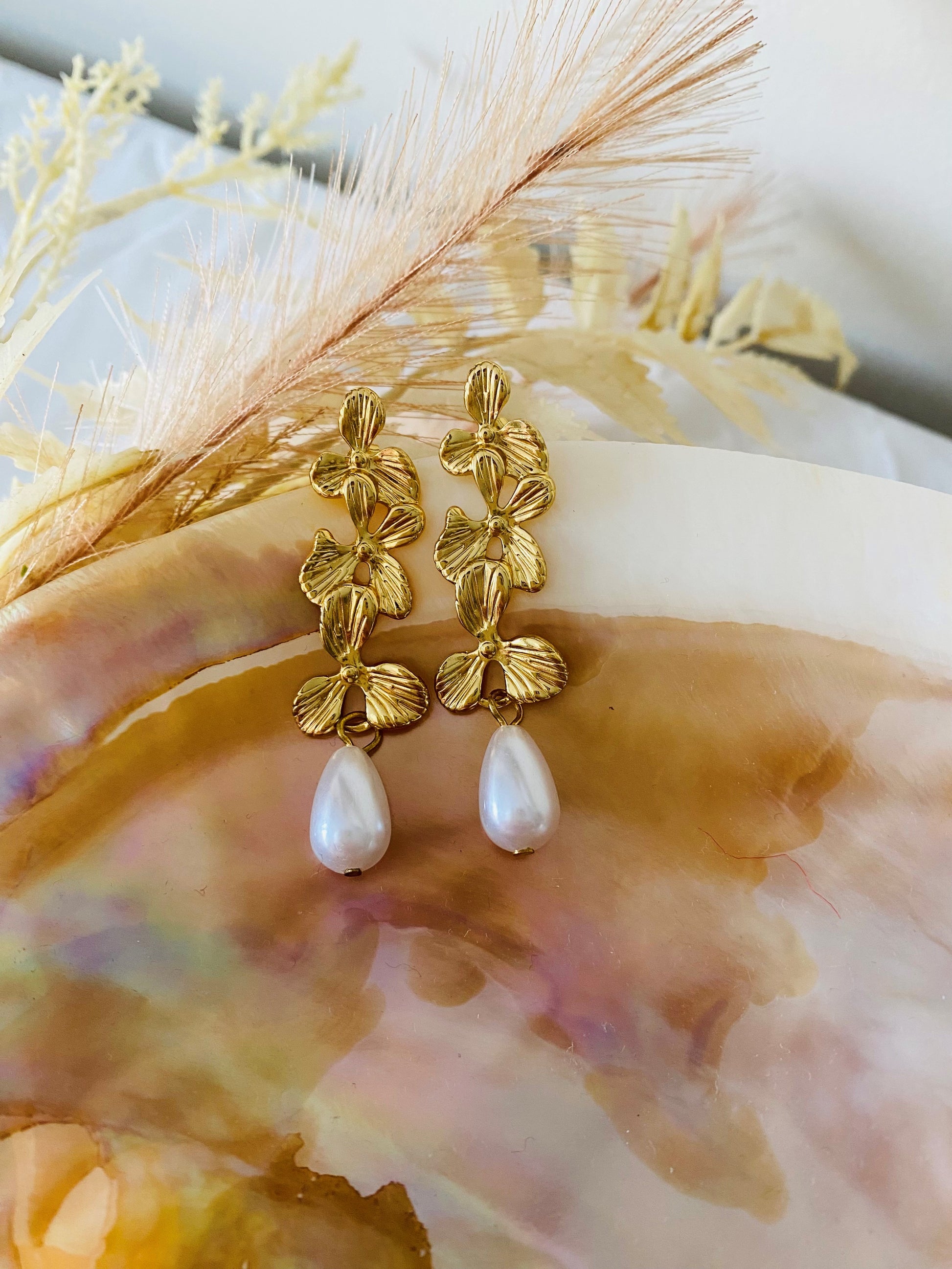 Deze verfijnde gouden steker straalt tijdloze schoonheid uit met een subtiel bloemenmotief van drie delicate bloemetjes. Aan de steker hangt een sierlijke parel die de oorbel een extra vleugje elegantie en vrouwelijke charme geeft. Perfect voor elke gelegenheid, van dagelijks draagplezier tot feestelijke momenten.