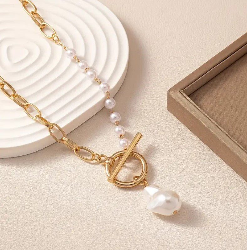 Een perfecte mix van modern en tijdloos. Deze halsketting combineert glanzende schakels met zachte witte parels voor een stijlvolle en verfijnde look. Het speelse contrast tussen de stevige schakels en de delicate parels maakt dit sieraad veelzijdig: draag hem dagelijks voor een subtiele touch of bij een speciale gelegenheid als elegante eyecatcher.