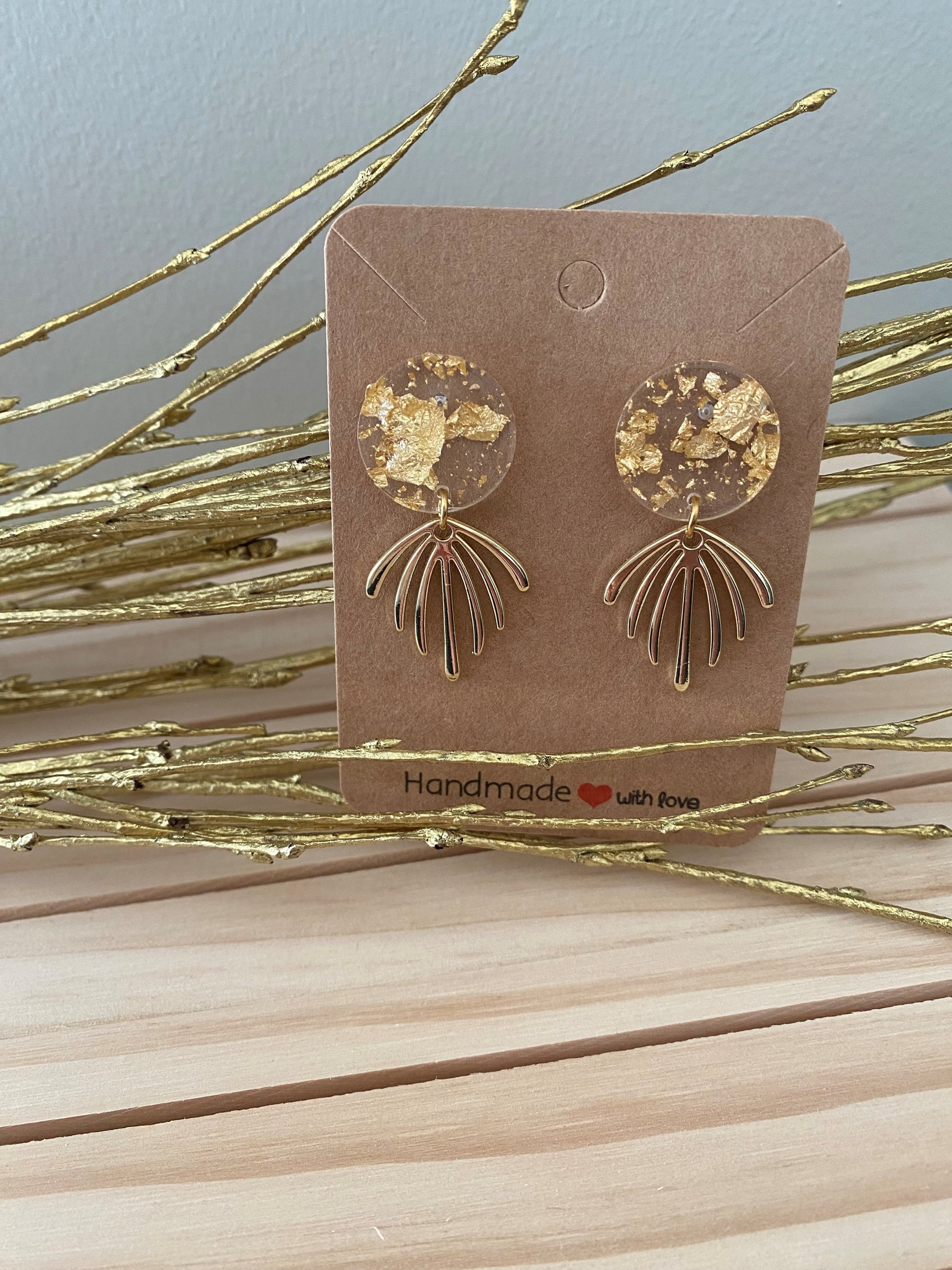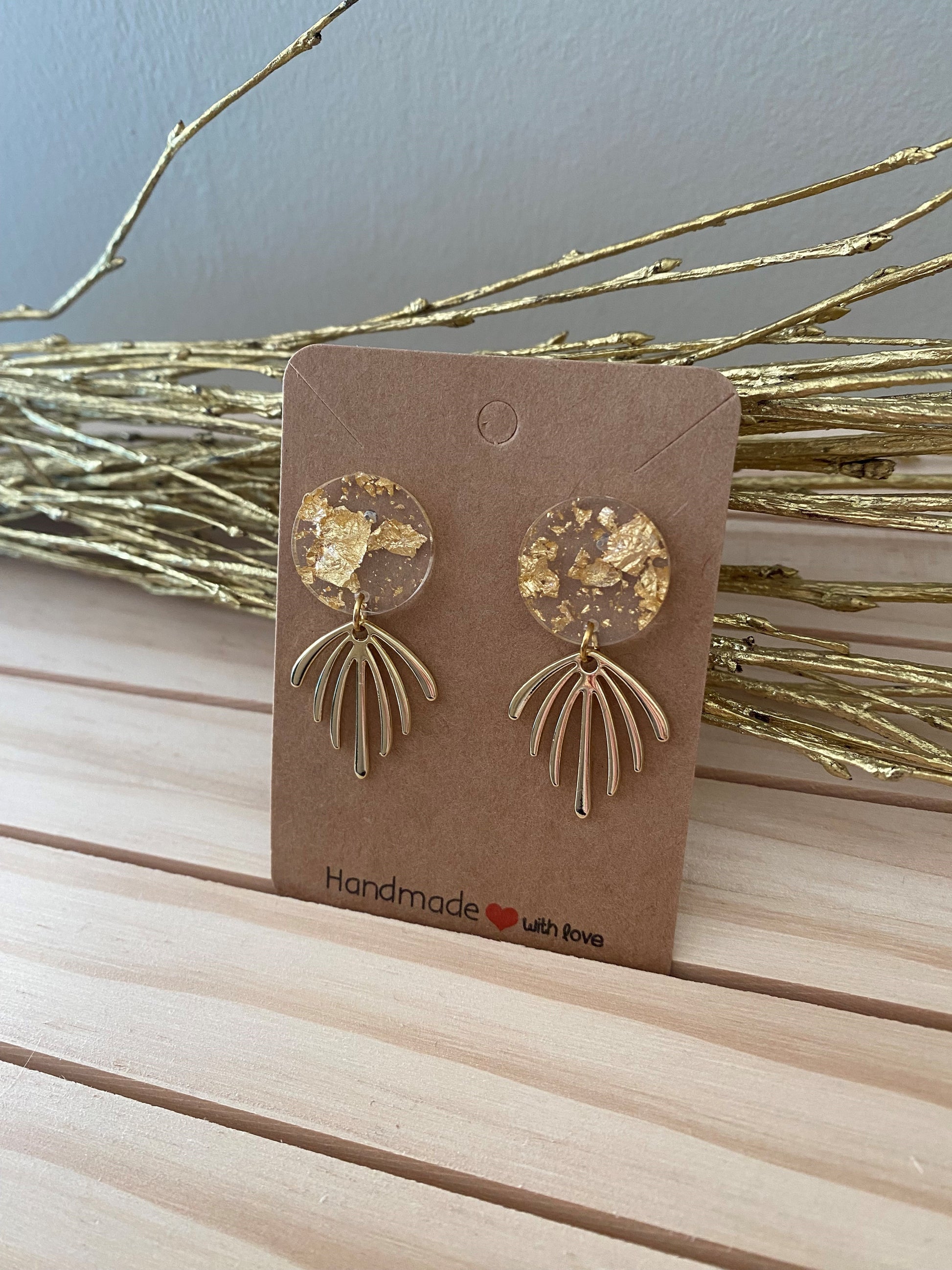 Deze doorzichtige ronde resin steker is een prachtig samenspel van transparantie en luxe. Het bladgoud dat subtiel in het resin is verwerkt, vangt het licht op een schitterende manier, terwijl de speciale gouden hanger het sieraad een elegante en verfijnde finishing touch geeft.