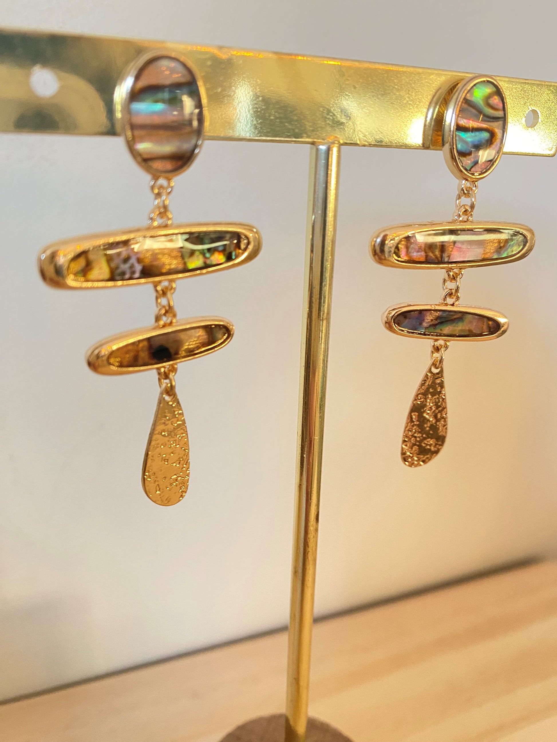 Deze oorringen met 3-laagse veelkleurige hangers zijn een feest voor het oog. Elke laag vangt het licht op een unieke manier en creëert een speels en levendig effect. De combinatie van meerdere kleuren geeft een frisse, vrolijke uitstraling, terwijl de ronde oorring het geheel elegant omlijst.