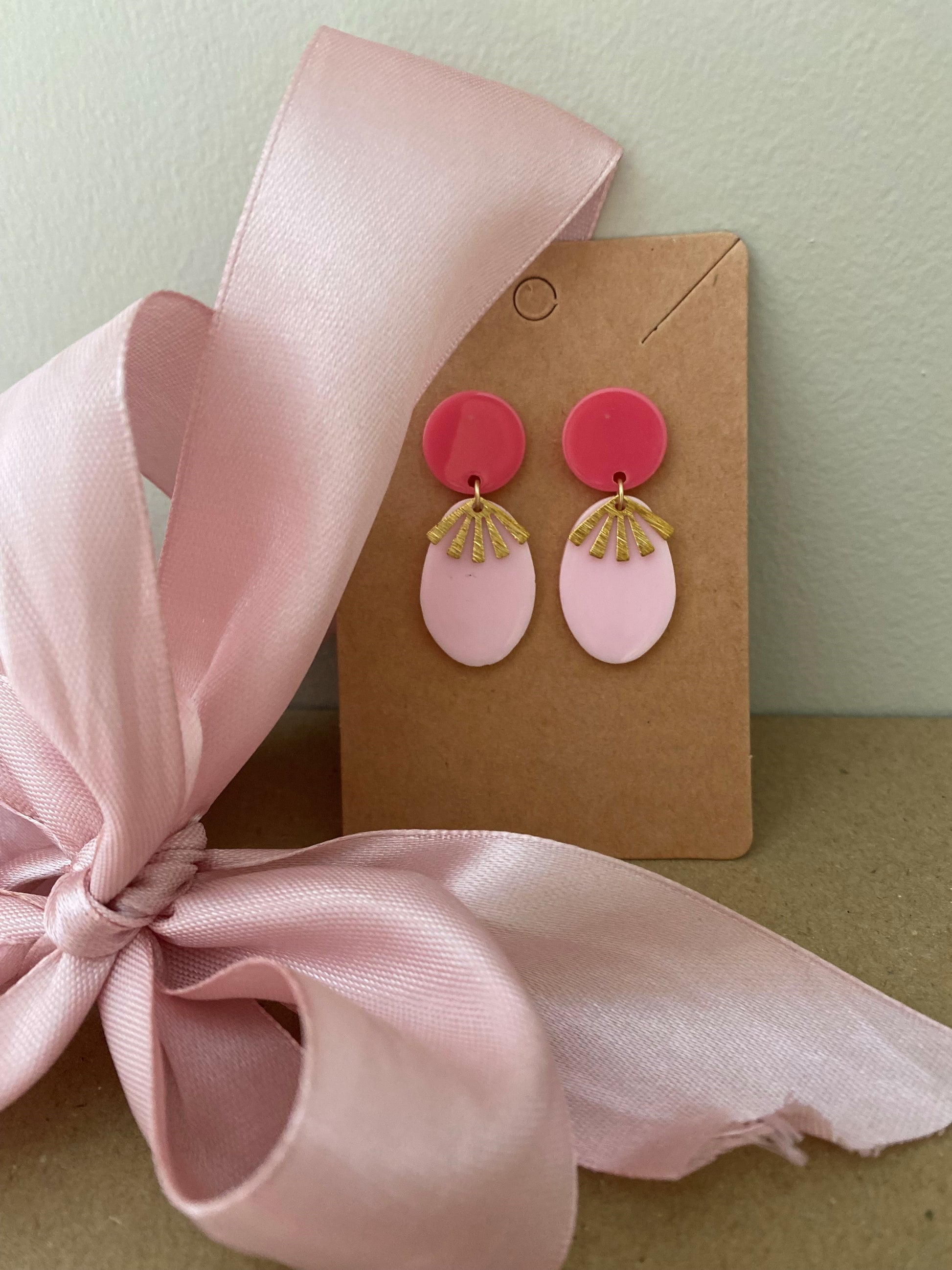 Deze prachtige oorringen combineren een zachtroze steker met een speelse resin hanger in dezelfde kleur, subtiel afgemaakt met een glanzend gouden accent. Het resultaat? Een elegant en fris sieraad dat iedere outfit oplicht en perfect past bij een vrouwelijke en moderne stijl.