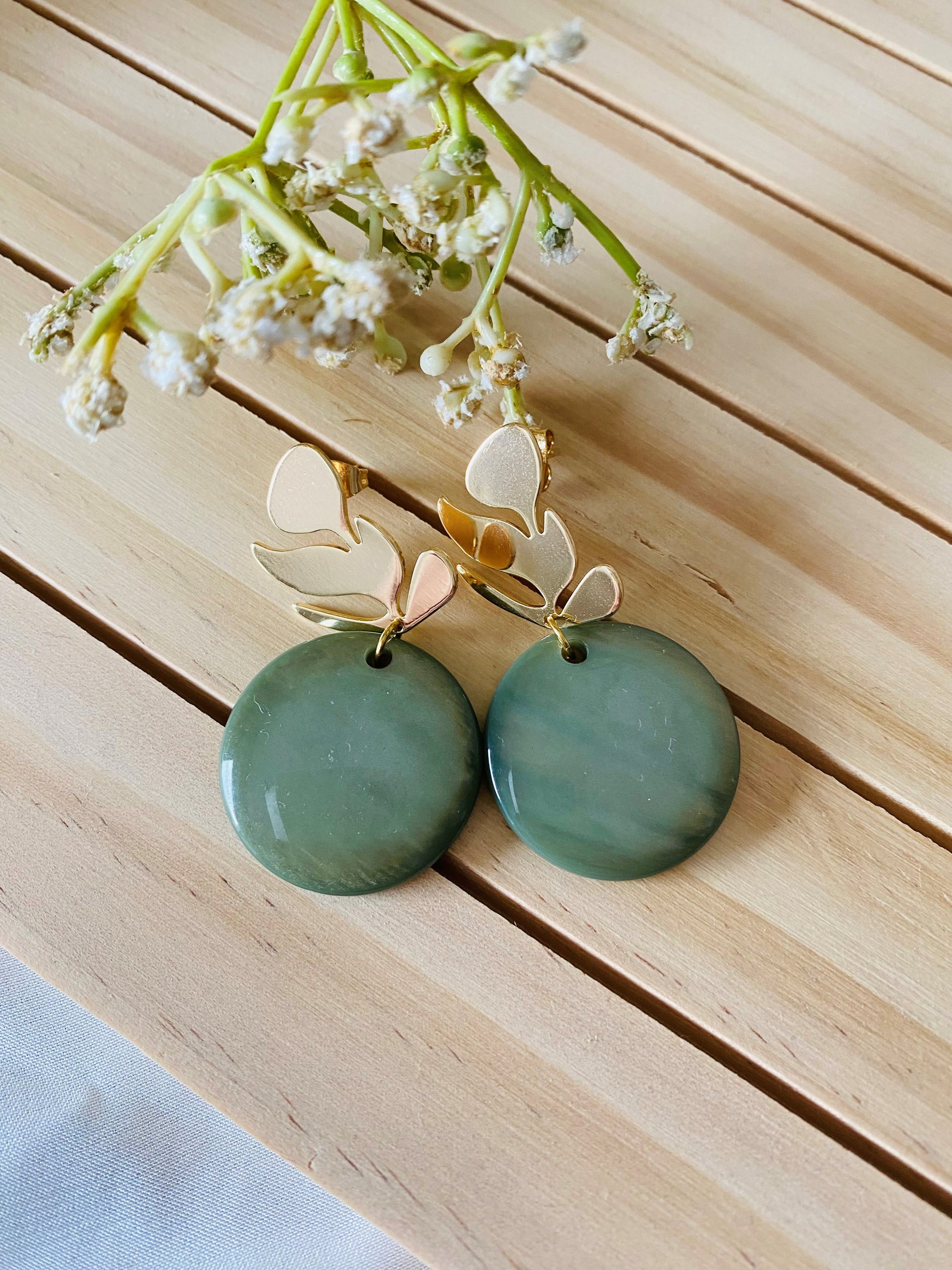 Goud ontmoet groen in deze stijlvolle oorbellen met bladvormige steker en glanzende, ronde polaris steen. Elegant, vrouwelijk en perfect als verfijnd accent voor elke dag.