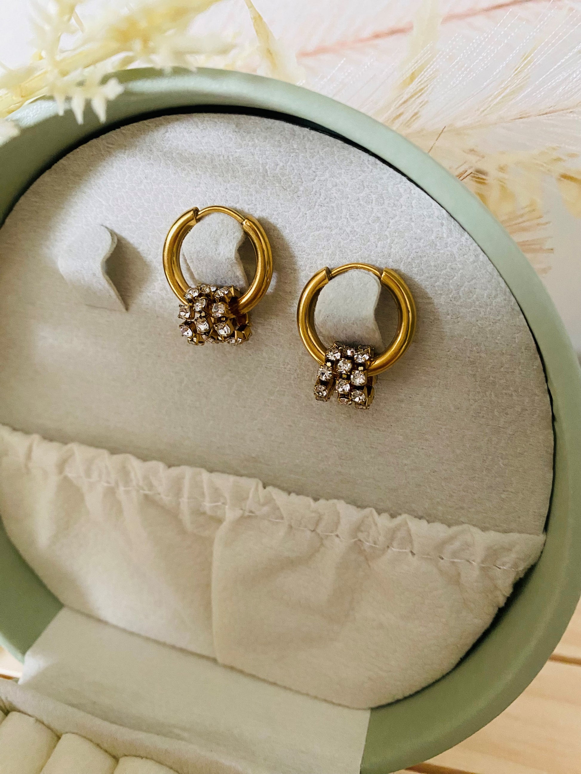 Oorringen met fonkelende strass-diamanten die het licht prachtig vangen bij elke beweging. Het tijdloze ronde design maakt ze perfect voor zowel dagelijkse looks als feestelijke gelegenheden.